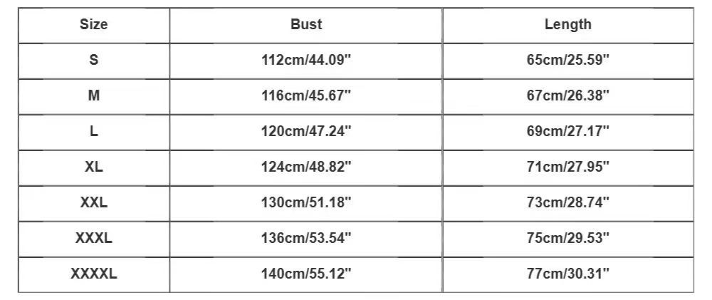 Sizes: S, M, L, XL, XXL, 3XL, 4XL